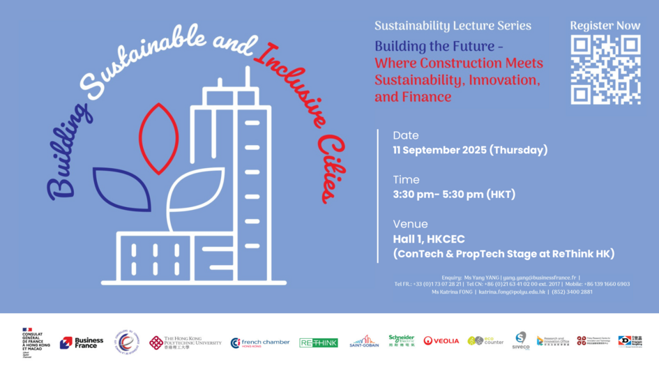 Co-organisée par le Consulat général de France à Hong Kong et Macao et le Bureau de la recherche et de l’innovation (RIO) de l’Université polytechnique de Hong Kong et Business France, la sixième édition du cycle de conférences sur le développement durable réunira des intervenants issus des milieux universitaires et économiques pour partager leurs points de vue, leurs expériences et leurs bonnes pratiques en matière de développement durable.